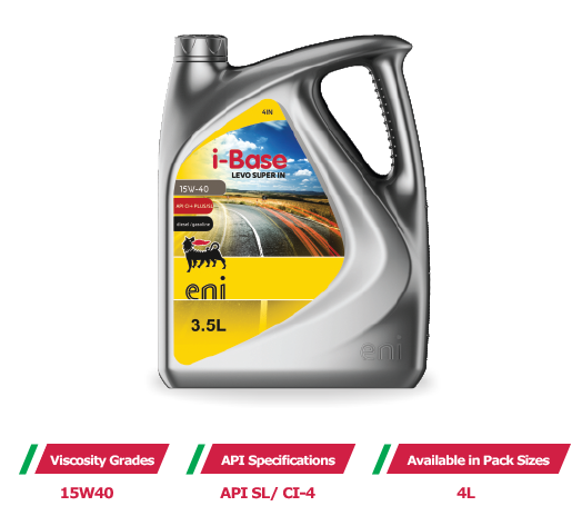 eni i-Base LEVO SUPER offers excellent protection during start-up. This is because eni i-Base LEVO SUPER easily flows when temperature is cold and guarantees a quick oil circulation in all moving parts at the engine start; moreover, the lubricant forms an oily film which adheres tenaciously to metal surfaces even when the engine has been standing for some time.